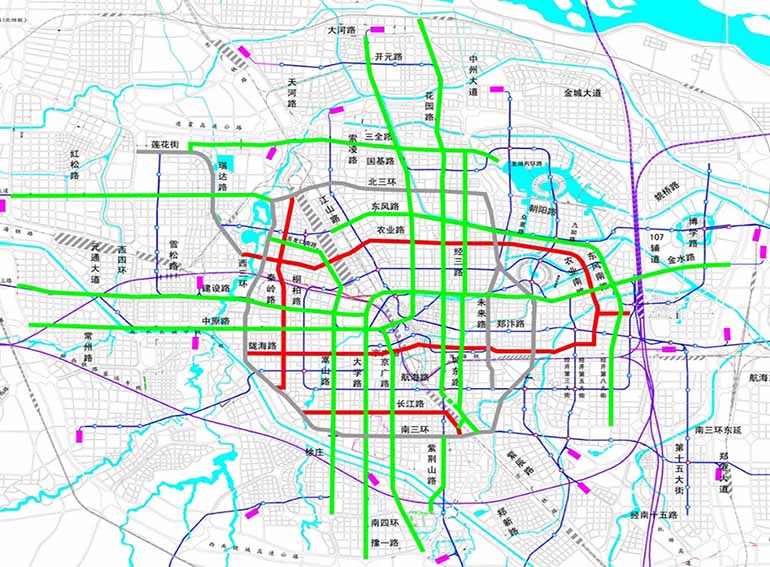 为缓解城市拥堵,改善城市居住环境,创建和巩固郑州市公交都市建设,开展郑州市常规公交专用道建设工程。该工程目前已开建2期,其中一期涉及22条道路共计305.3公里,二期涉及16条道路119.3公里。建设内容主要包括公交专用道沿线交通标志系统、交通标线系统、隔离设施、固定及车载抓拍系统、公交停靠站设计、交叉口渠化、智能公交违法抓拍管理系统等,期望通过常规公交专用道的建设完善,提高常规公交运行效率和服务水平。